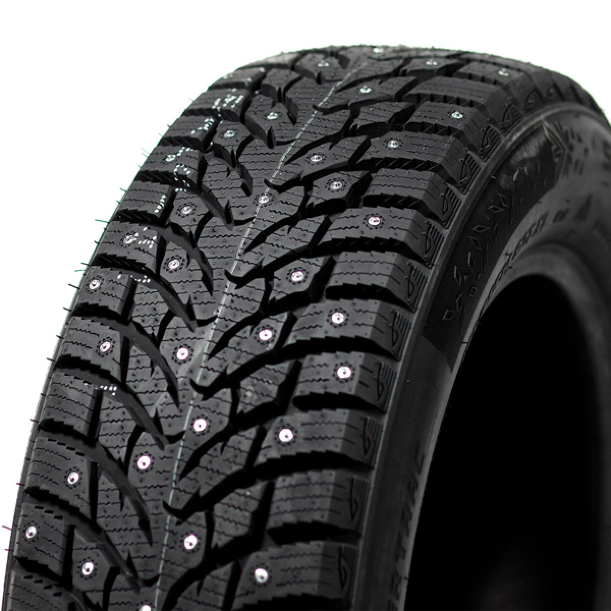 Оптимальное количество шипов (150-200шт) обеспечивают аккустический комфорт и топливную экономичность сохраняя при этом сцепление с дорогой. Жесткая конструкция блока из нанокомпозитов нового поколения обеспечивает стабильное положения шипа. Острый рисунок в виде когтей в центре протектора обеспечивает стабильную и точную управляемость. Широкие одинарные направляющие V-образные канавки даже на тающем снегу и льду эффективно отводят воду из пятна контакта, а также обеспечивают надежное сцепление с дорогой.